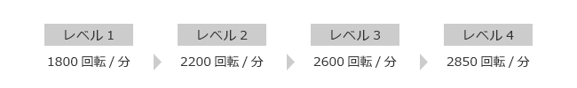 毎分1800~2850回転まで、4段階振動レベルと押し当てる強さによりお好みのパワー調節が魅力。
